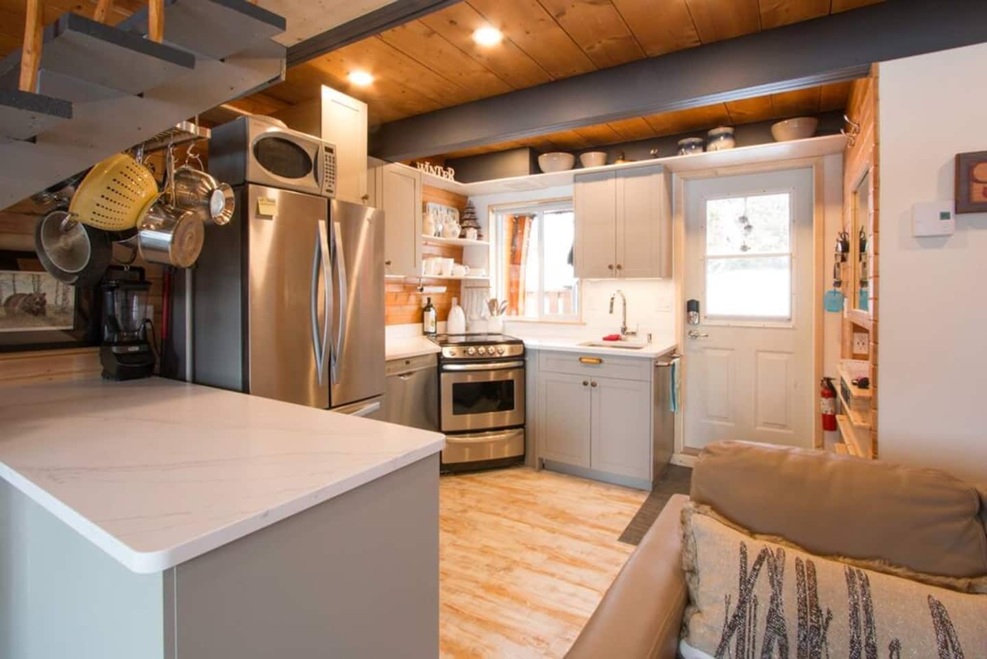 This vacation spot is full service including high quality beds & linens (no microfibre), high speed Internet with Roku TV & Netflix year round. There are two bedroom areas in the loft with privacy sight wise, but not noise wise. Each bedroom has a convenient desk area. Come experience BC wilderness with all the comforts.