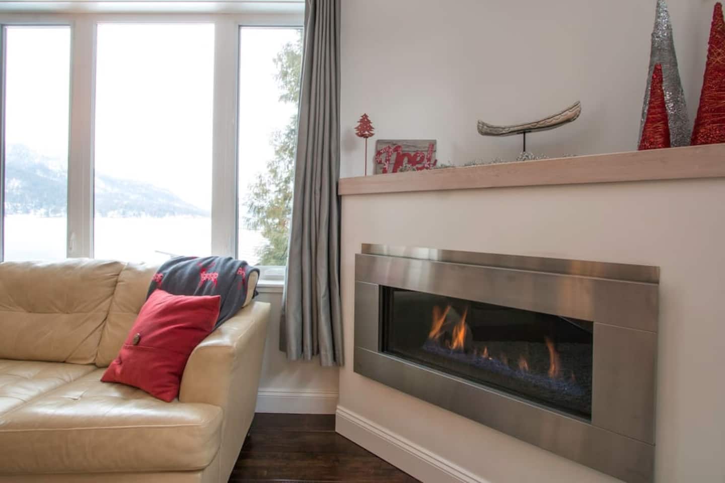 The Lighthouse is a beautiful newer home, a year round retreat with stunning lake views. Aptly named because of its’ height, this uniquely designed home and great lakefront property has gorgeous views looking up the lake, a great beach and crystal clear water for swimming. The Lighthouse is such a special spot, comfortable for a couple's getaway but big enough for a family group.